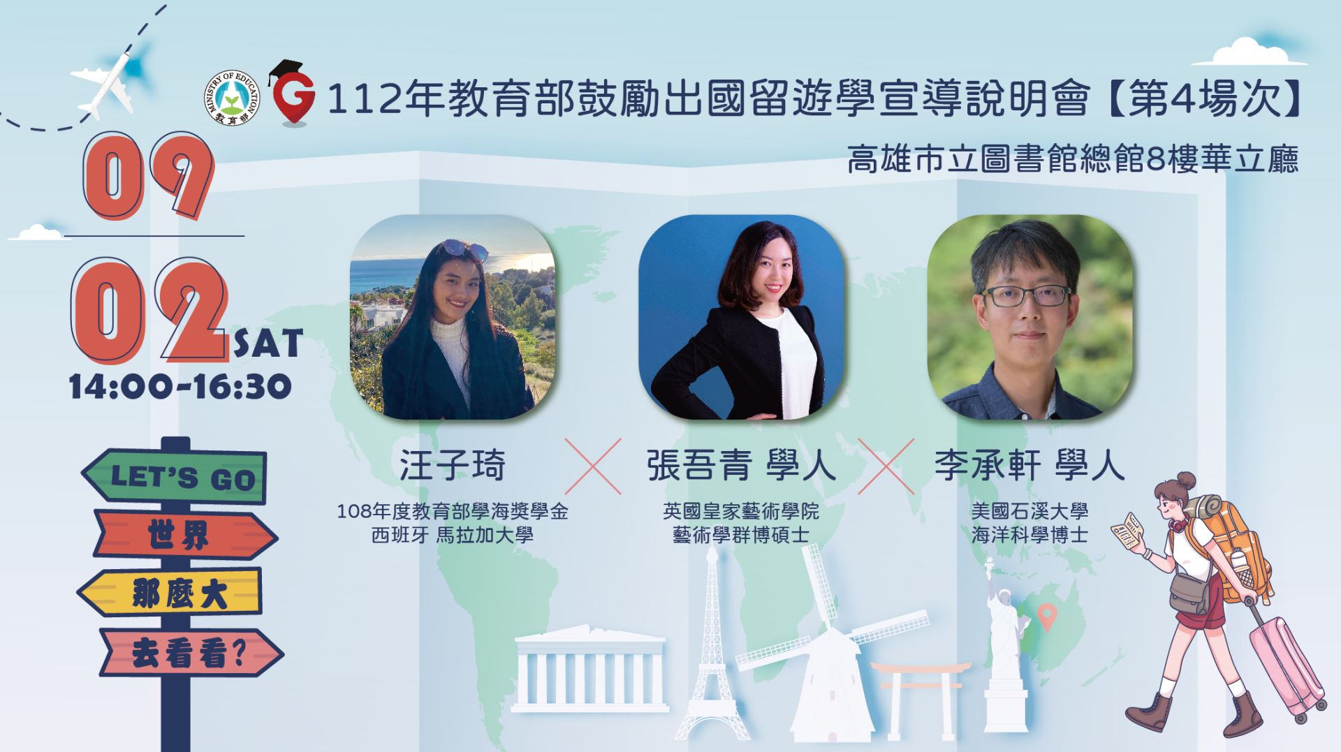 世界那麼大,出國去看看?本次的出國留遊學宣導說明會邀請到張吾青學人、李承軒學人和汪子琦學海得獎生,分別在英國、美國和西班牙有著豐富經歷的他們,向大家分享自身的海外經驗以及未來發展,他們利用自身寶貴經歷來解答未來想出國留遊學的學子們疑惑!