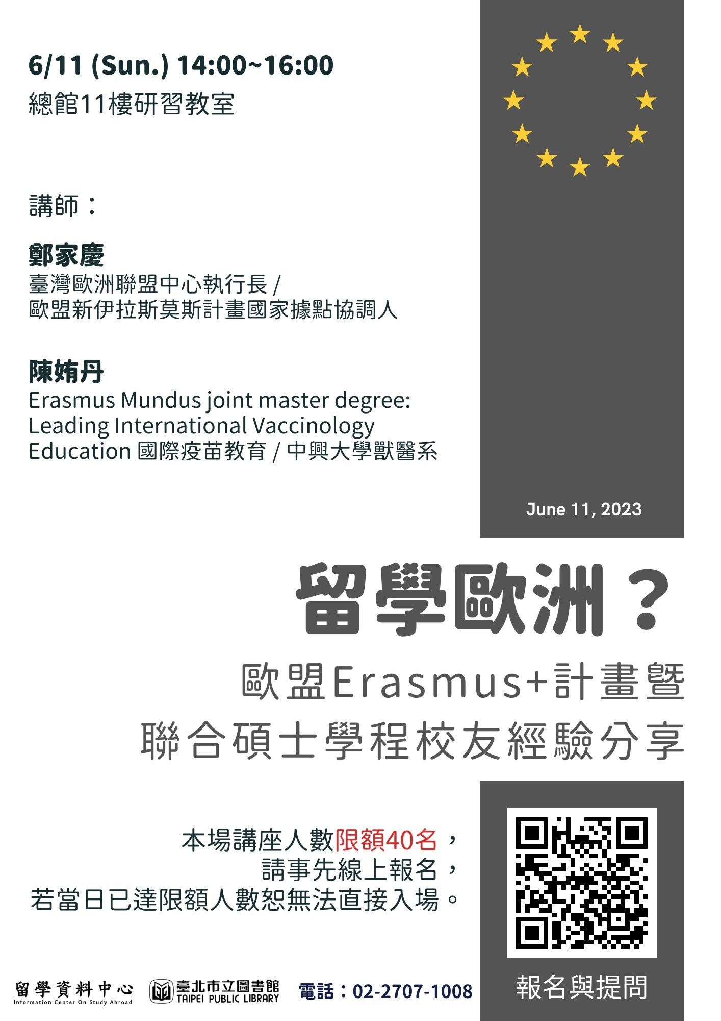【資訊分享】留學歐洲?歐盟Erasmus+計畫暨聯合碩士學程校友經驗分享