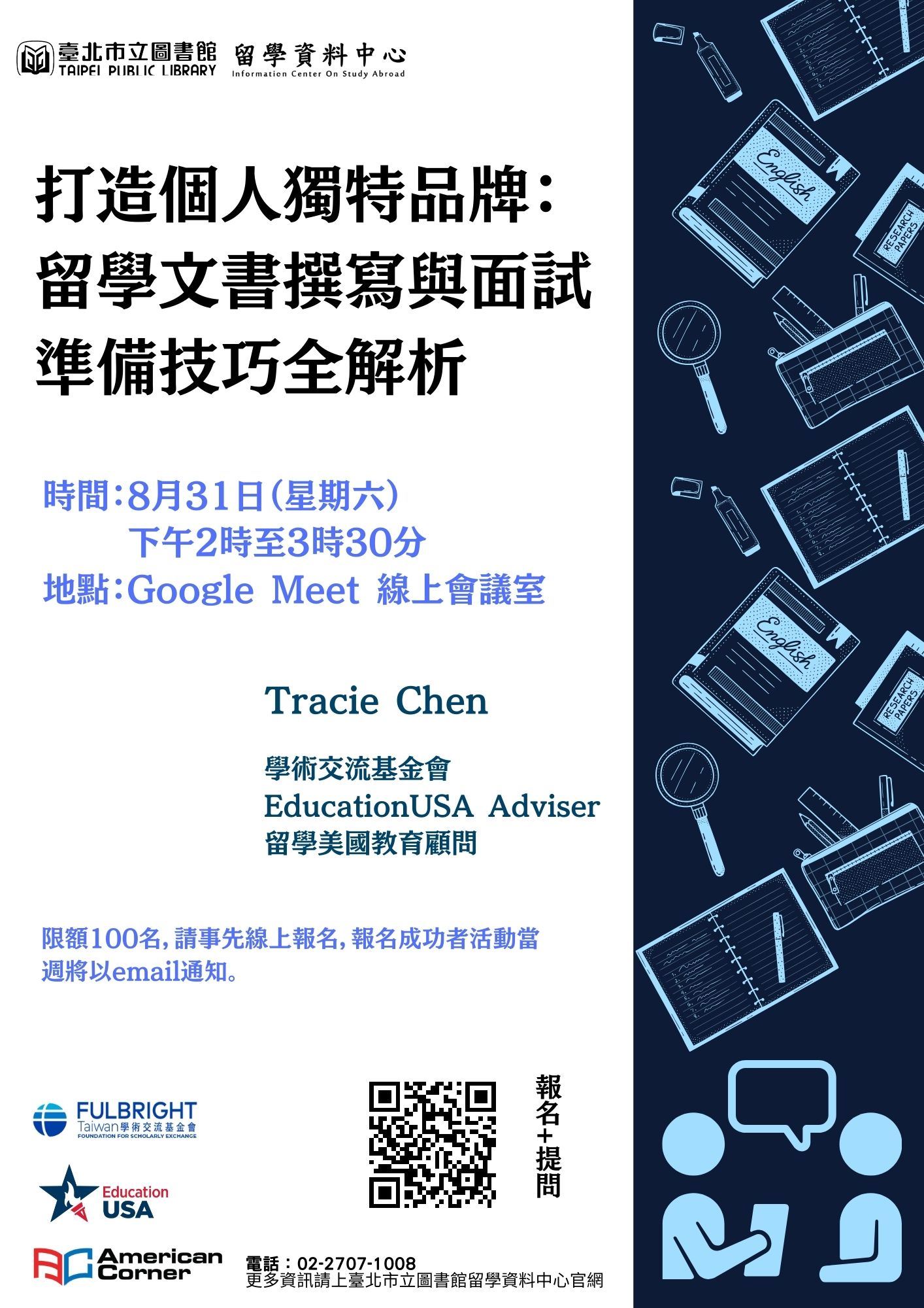 【#資訊分享】0831 「打造個人獨特品牌:留學文書撰寫與面試準備技巧全解析」線上講座!