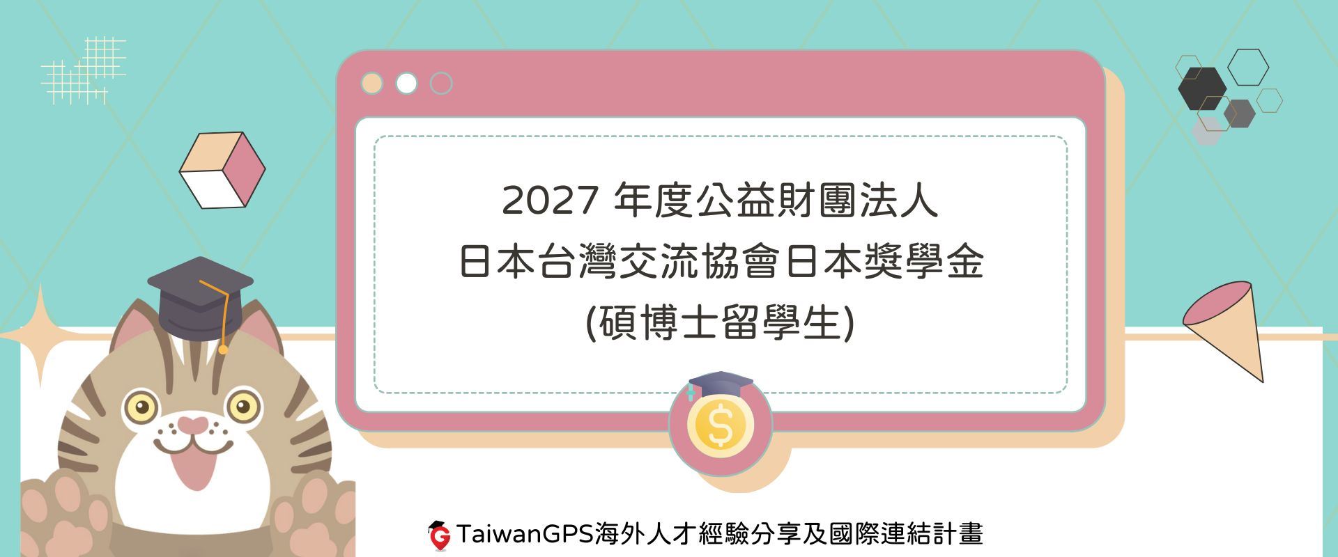 【#獎學金資訊分享】2027年度公益財團法人日本台灣交流協會日本獎學金 (碩博士留學生)