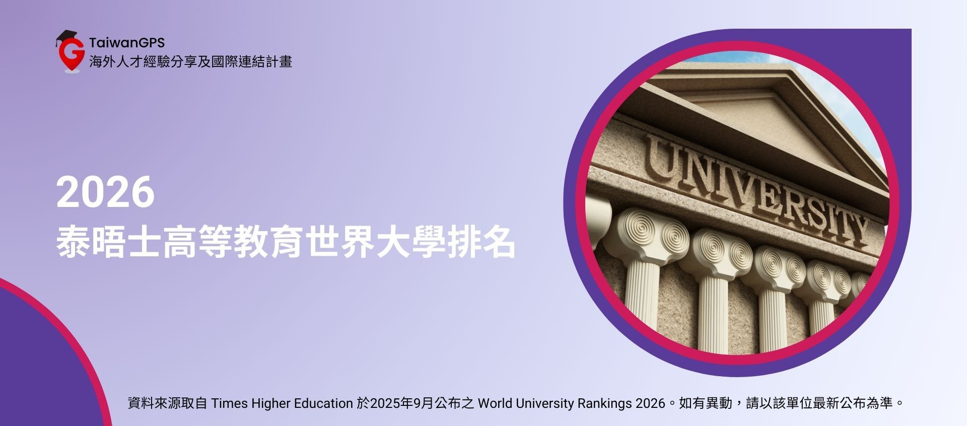 資料來源取自 Times Higher Education 於 2025 年 9 月公布之 World University Rankings 2026。如有異動,請以該單位最新公布為準。